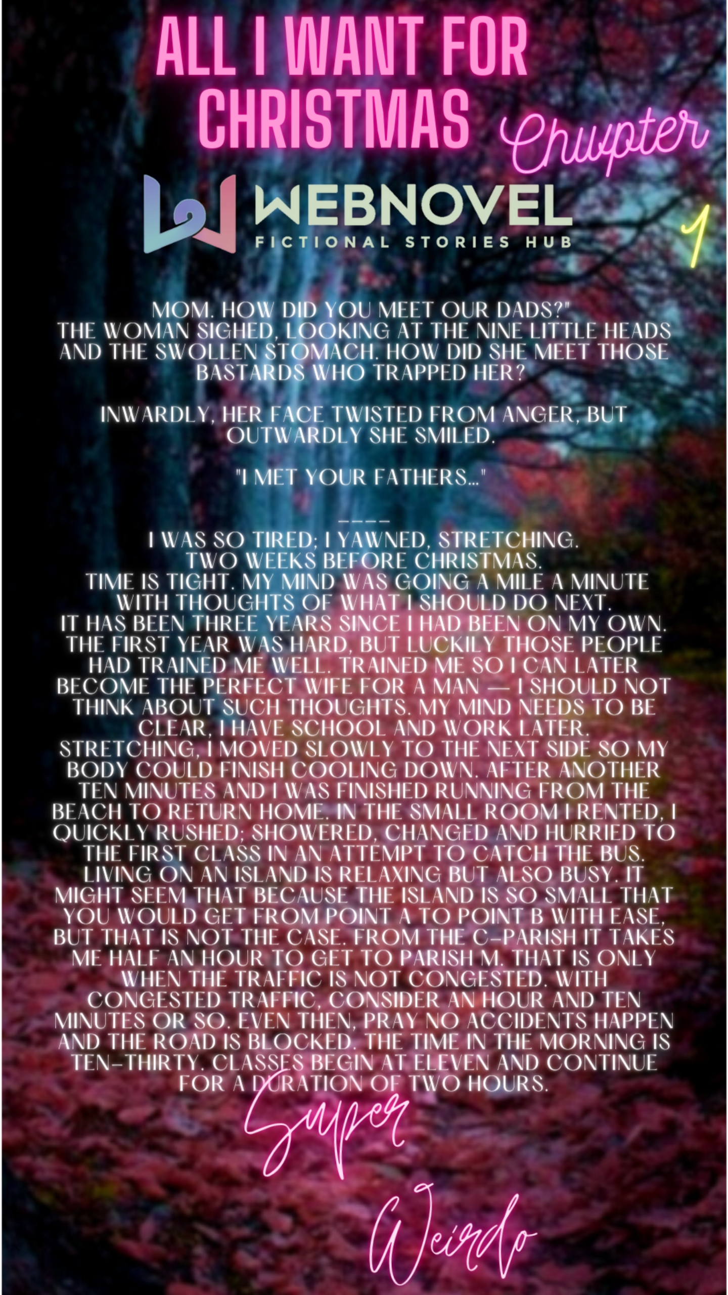 In my original world, I had a mother and a father and was their only child, doted on but never spoiled, my mother though seemingly gentle was a strict woman and my father even if he loved me loved his wife more.